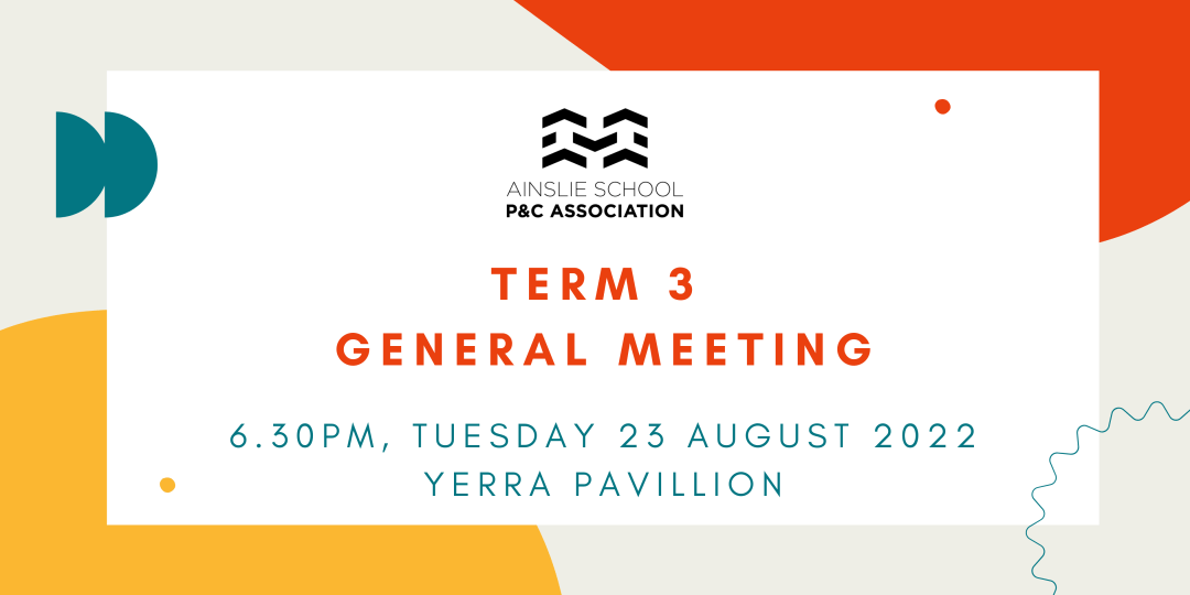 6.30, Tuesday 23 August Come and join us for our term 3 General Meeting. We need your votes to repeal the current Ainslie P&C Constitution and adopt a new version to better fit with updated templates provided by the ACT Council of Parents and Citizen's Association. Attending our general meetings is also a great way … Continue reading General Meeting, term 3